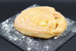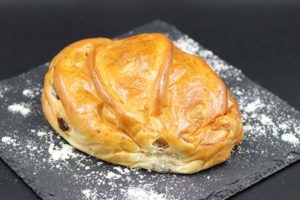 Butter-Hefeteig mit feinen Schokostückchen und süßen Zuckersticks verfeinert