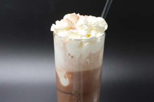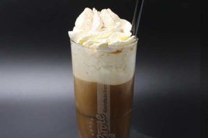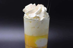 Erfrischendes, kühles Getränk mit Orangensaft und Vanilleeis