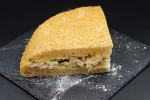 Herzhaftes Fladenbrot mit Thunfisch belegt