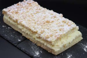 Kuchen mit cremiger Vanille-Füllung und knusprigen Streuseln