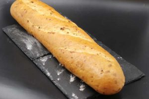 Herzhaftes, rustikales Baguette mit Paprika, Käse und Kürbiskernen